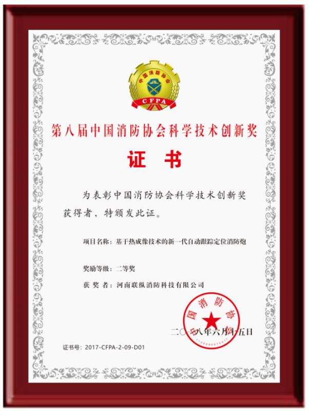 河南聯(lián)縱消防科技有限公司位于鄭州市高新區(qū)電子電器產(chǎn)業(yè)園,擁有專家團(tuán)隊和標(biāo)準(zhǔn)化工業(yè)廠房和實驗場,是一家以大空間智能消防水炮為主導(dǎo)的集科研、開發(fā)、生產(chǎn)、銷售、服務(wù)于一體的高科技消防設(shè)備制造企業(yè)。 公司以“極致產(chǎn)品安天下”為宗旨,針對市場上普通消防水炮精準(zhǔn)度差、易誤噴、不能實時追蹤動態(tài)火源、適用場所受限等缺陷,歷時6年,成功研發(fā)出了第II代自動跟蹤定位射流滅火裝置系列產(chǎn)品。公司已通過了IS09001:208、IS014001:2004、OHSAS18001:2007、GB/T29490-2013等體系認(rèn)證,獲得專利授權(quán)三十多項,取得國家級高新技術(shù)企業(yè)、消防行業(yè)誠信示范單位、消防科技創(chuàng)新企業(yè)、第八屆中國消防協(xié)會科學(xué)技術(shù)創(chuàng)新獎,產(chǎn)品通過國家消防裝備質(zhì)量監(jiān)督檢驗中心檢驗,并獲得了公安部消防產(chǎn)品合格評定中心頒發(fā)的消防產(chǎn)品認(rèn)證證書。 第II代自動跟蹤定位射流滅火裝置采用熱成像+捷聯(lián)制導(dǎo)技術(shù),集自動報警、動火追蹤、自動滅火、視頻監(jiān)控四位一體,具有可靠性高、精準(zhǔn)度好、性能穩(wěn)定、安裝操作方便、智能化程度高、應(yīng)用環(huán)境廣泛等特點(diǎn)。公司產(chǎn)品自上市以來,已經(jīng)有數(shù)萬臺產(chǎn)品被安裝在了數(shù)千個工程項目中,先后參加了幾十次國內(nèi)外消防展,贏得了各界人士的一直好評,被央視《我愛發(fā)明》欄目發(fā)現(xiàn)后,央視編導(dǎo)組對產(chǎn)品性能進(jìn)行了數(shù)十天的實驗和拍攝,先后在以下節(jié)目播出: CCTV-10《我愛發(fā)明》之“烈火哨兵”、CCTV-10《實驗現(xiàn)場》之“滅火試驗”、CCTV發(fā)現(xiàn)之旅《品質(zhì)》之“智慧消防 守護(hù)一生”、 CCTV-17新改版《我愛發(fā)明》之“智能水炮”...